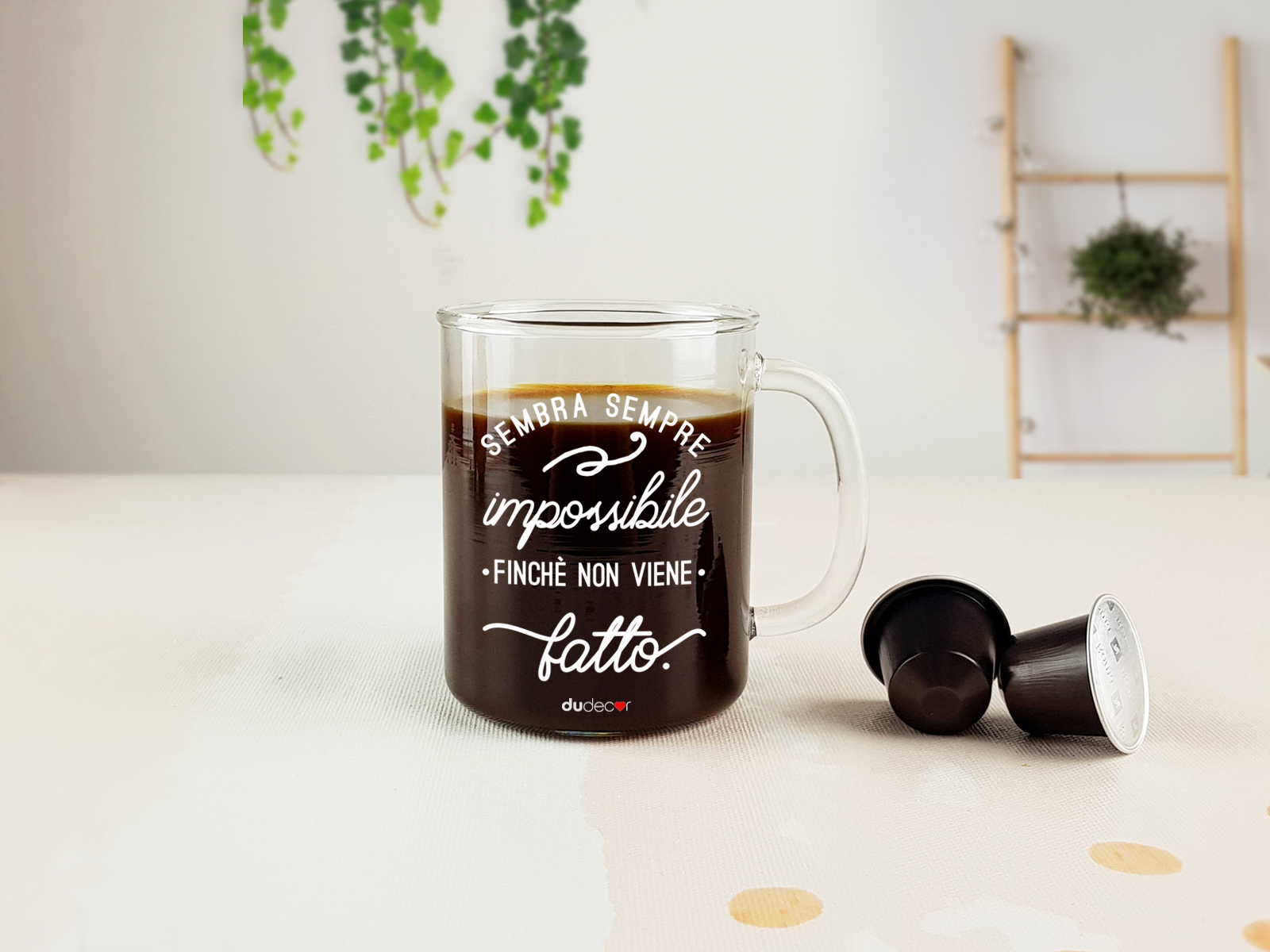 Stampata su vetro trasparente, diventa ancora più vera mentre il caffè sale,