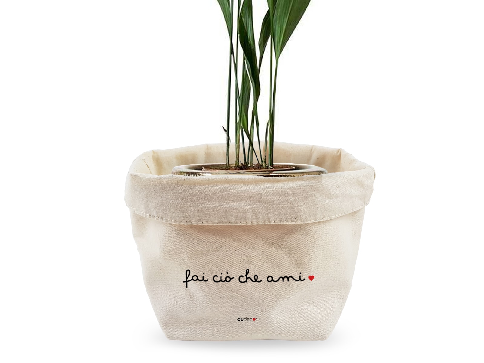 Il Portaoggetti Fa Ciò che Ami è uno dei sacchetti in tessuto Dudecor. Ideale per custodire i tuoi effetti personali di piccole dimensioni.