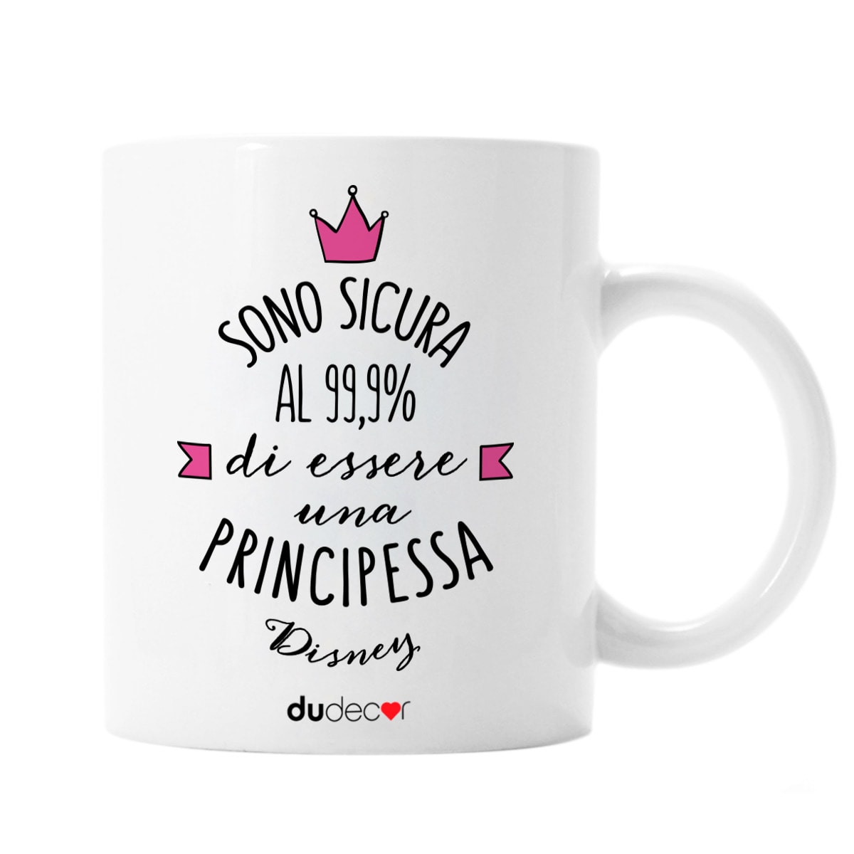 La tazza “Sono sicura al 99,9% di essere una principessa” è dedicata a chi affronta la quotidianità con ironia, sicurezza e un pizzico di autocelebrazione. La grafica giocosa e il messaggio leggero la rendono perfetta per iniziare la giornata con il giusto atteggiamento.