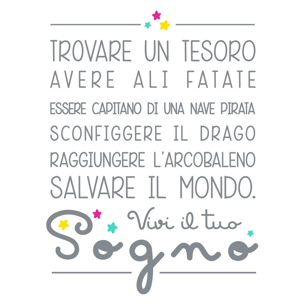 Il tuo piccolo ometto e la tua bella principessa sono pronti a vivere i loro sogni e affrontare i primi grandi obiettivi della vita. Trovare un tesoro racchiuso nell’amico del cuore, avere le ali fatate per volare alla ricerca di mondi magici, essere il capitano di una nave pirata (mi raccomando, ricordati la bandana sull\’occhio), sconfiggere il drago che si nasconde nell’armadio, raggiungere un arcobaleno e trovare una pentola d’oro oppure, più semplicemente, salvare il mondo.